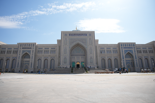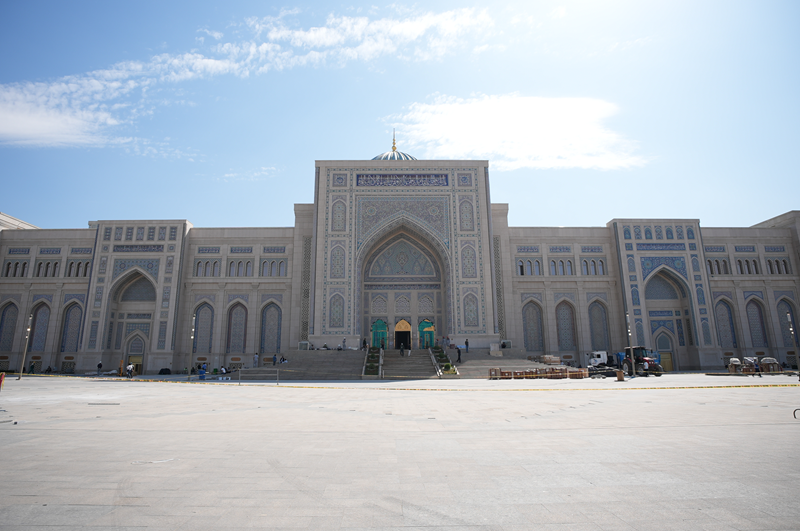 ℹ️ Das Zentrum für Islamische Zivilisation entsteht neben dem Hast-Imam-Komplex. Das Gebäude des Zentrums wurde im Stil antiker Baudenkmäler errichtet – mit vier Portalen von je 34 Metern Höhe und einer zentralen Kuppel von 65 Metern. Vorgesehen sind hier ein Koran-Saal, ein Konferenzsaal mit 460 Plätzen sowie ein Museum, dessen Ausstellungen die gesamte Geschichte Usbekistans – von vorislamischer Zeit bis in die Gegenwart – umfassen. Das Zentrum soll zu einer Plattform für die Erforschung des Erbes der Vorfahren und dessen zeitgemäße Interpretation werden, in Zusammenarbeit mit der Islamischen Internationalen Akademie Usbekistans und einschlägigen wissenschaftlich-pädagogischen Zentren aus aller Welt.