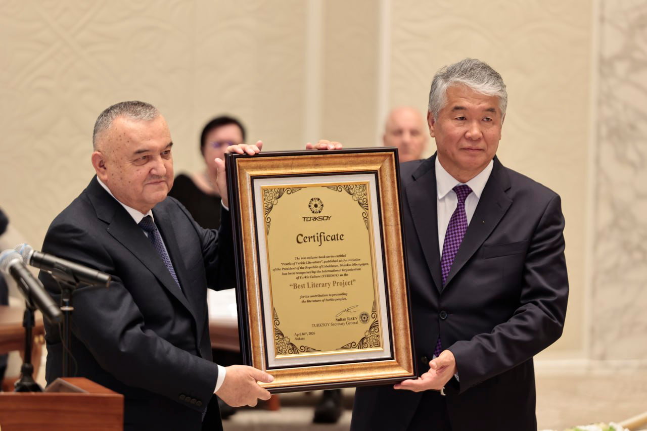 „Im Namen von TÜRKSOY wurden heute drei Zertifikate verliehen. Das erste erhielt die 100-bändige Buchreihe ‚Perlen der Literatur der Turkwelt', die auf Initiative von Präsident Shavkat Mirziyoyev erarbeitet wurde. Ein derart umfangreiches Werk war in der Turkwelt bislang ohne Beispiel und gilt als bedeutende usbekische Initiative. Kasachstan, Aserbaidschan und Kirgisistan arbeiten derzeit an eigenen Ausgaben mit 20, 30, 40 beziehungsweise 50 Bänden. Die Sammlung wurde daher als einzigartiges literarisches Phänomen der Turkwelt anerkannt und in der Kategorie ‚Bestes Literaturprojekt der Welt' ausgezeichnet. Das zweite Zertifikat erhielt das Zentrum für Islamische Zivilisation in der Kategorie ‚Bestes Museum der Turkwelt' – eine hohe Anerkennung seitens TÜRKSOY. Zudem wurde das Museum in die TÜRKSOY-Vereinigung der Museen der Turkwelt aufgenommen», sagte Rajew.