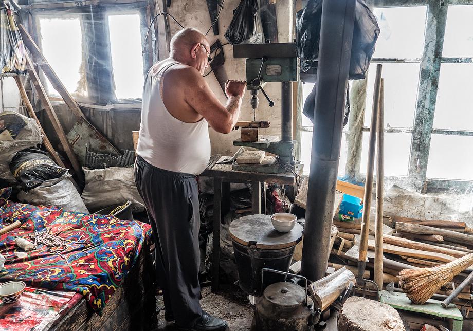 Danach fuhren wir in die Stadt Tschust, auf den Basar der traditionellen Tschuster Messer. Dort fand Anzor Schmiedewerkstätten mit brennenden Schmiedefeuern.